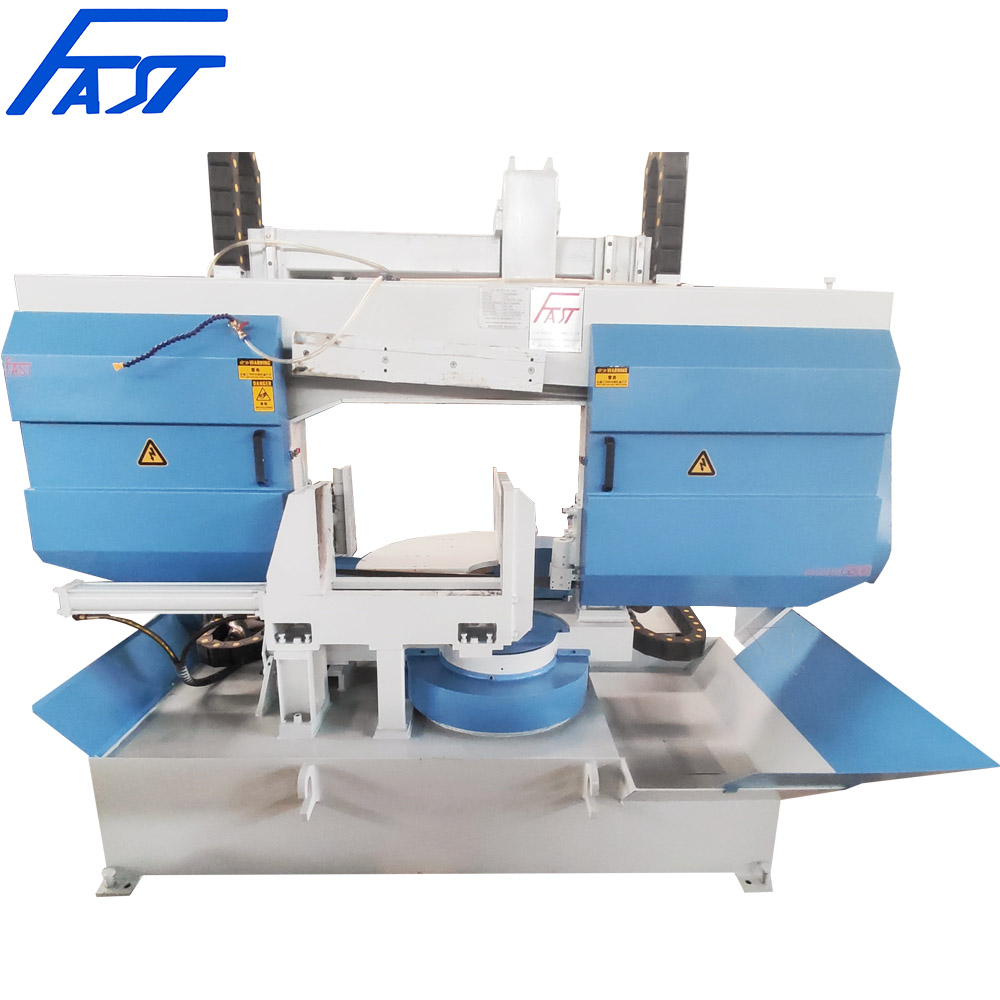 This machine is used to cut all kinds of steels. The saw frame can rotate on the platform, which can meet the cutting of all kinds of steel end faces at a certain degree. The degree can be adjusted between 0-45 degrees. It can also cut all kinds of black or non-ferrous metal materials after selecting appropriate processing parameters.